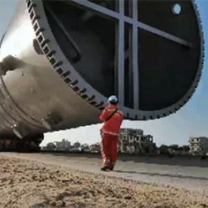 1#PDH装置核心设备丙烷丙烯分离塔在该项目的重件码头完成滚卸作业,至此丙烷丙烯分离塔、脱丙烷塔、脱乙烷汽提塔首批3台塔器顺利运输至施工现场。